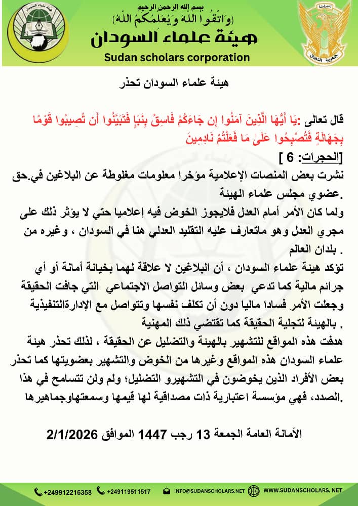 بيان تحذيري من هيئة علماء السودان